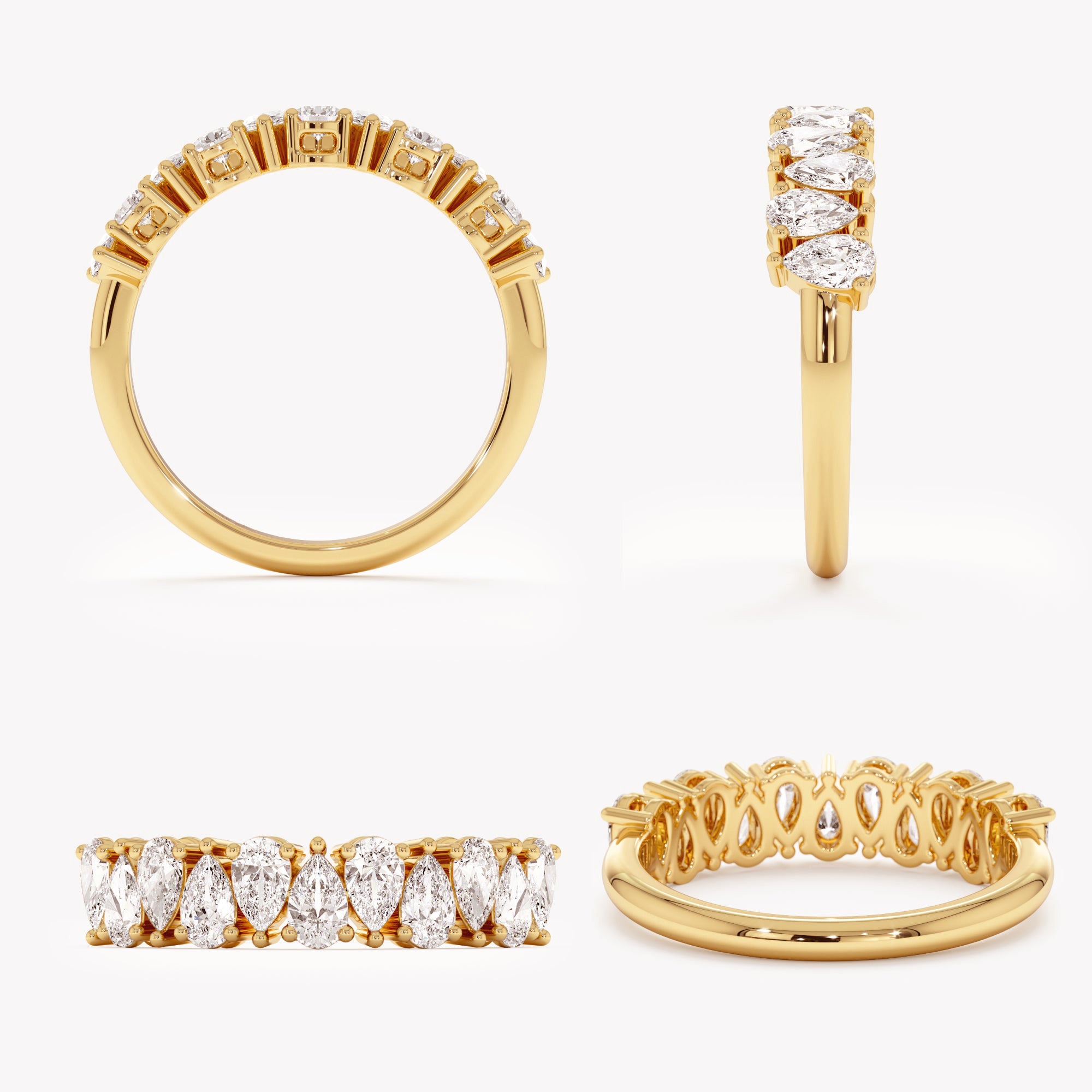 With this unique Moissanite wedding ring, you can make a statement of contemporary elegance. This band, which is made of solid 925 sterling silver, features an enthralling arrangement of brilliant, ethically sourced pear-shaped Moissanite stones set in an alternating "north-south" direction.