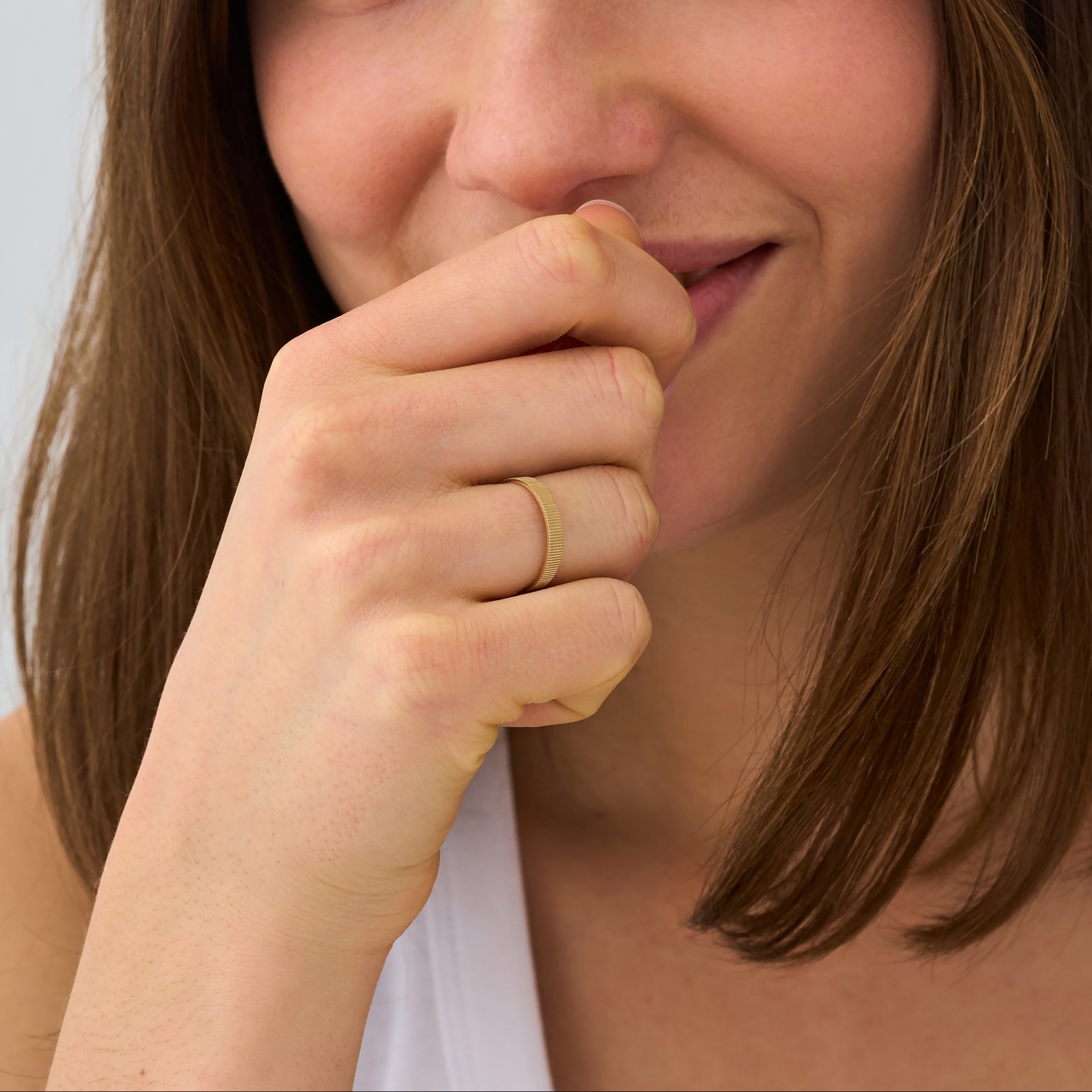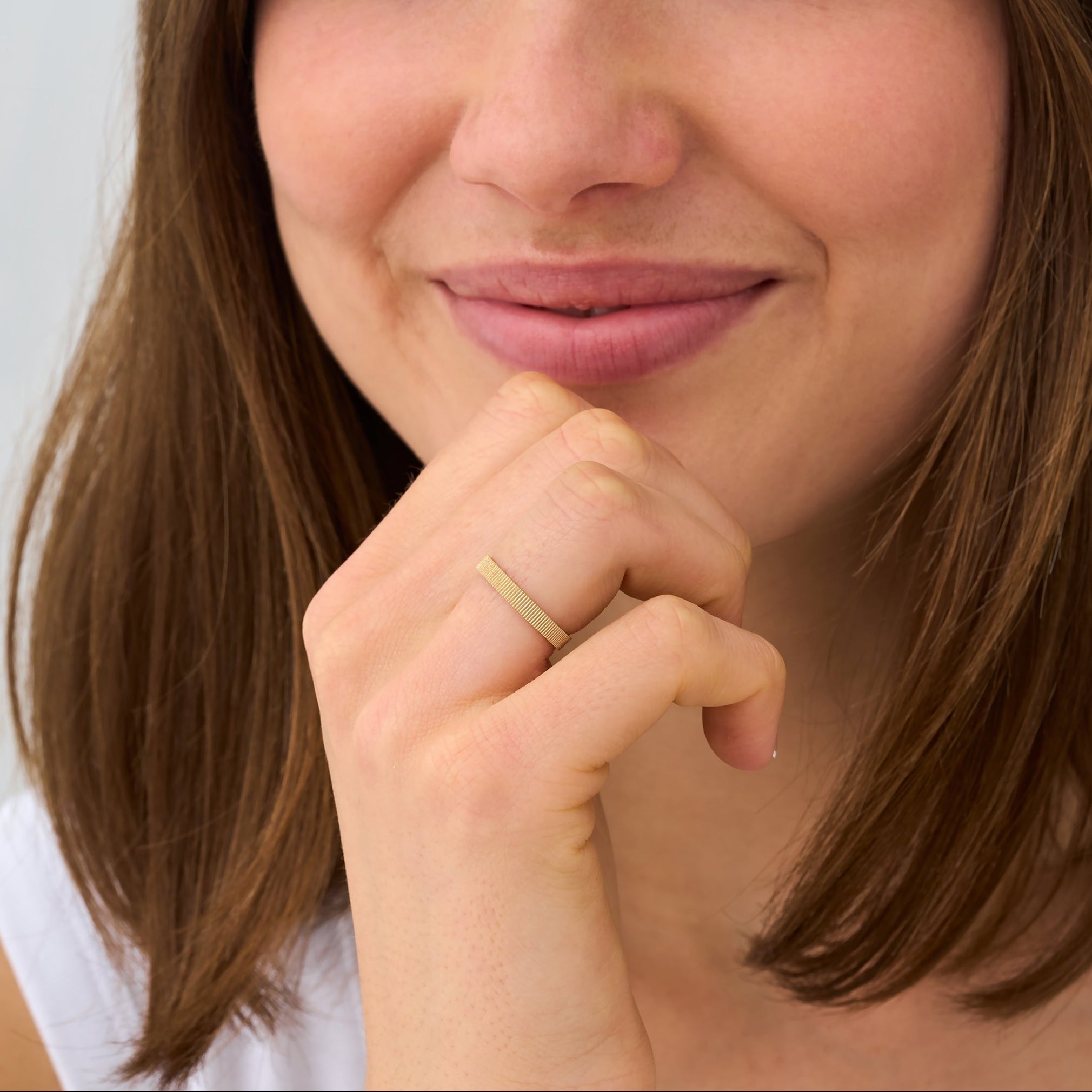 Discover the distinctive texture of our well-liked Bonnie ring in this adaptable 3mm width. This band is made of solid sterling silver and has a tactile element that gleams beautifully in the light. The 3mm width is ideal for stacking with other favorites while still being substantial enough to wear alone. Wider 4mm and 5mm options are also offered, as well as the slimmer 2mm.