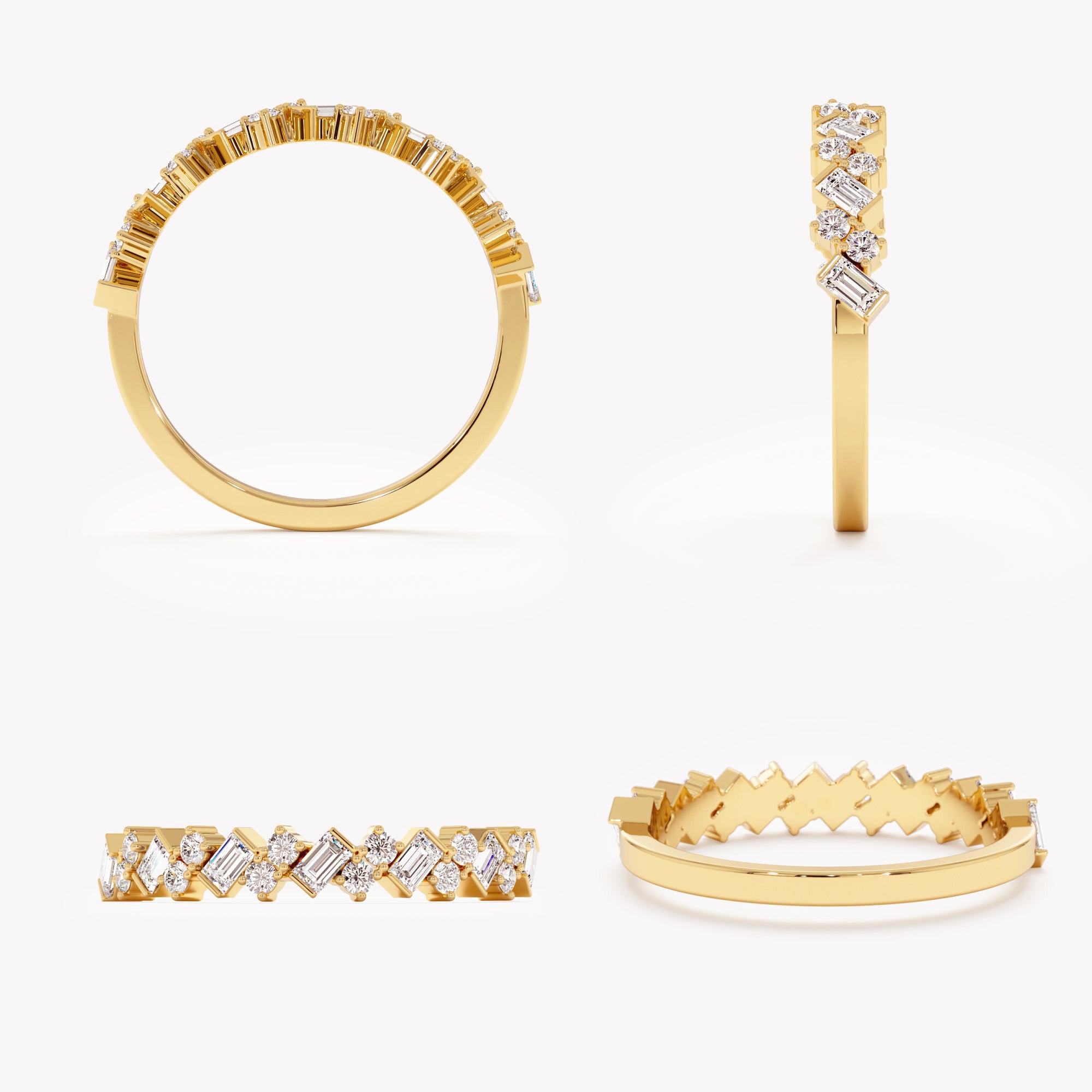 With the classic style of the Diamond Cluster Half-Eternity Ring, you can celebrate your love. A continuous band of brilliant round and baguette-cut Moissanite diamonds, expertly set in 925 sterling silver, adorns this exquisite piece. The endless nature of your love is symbolized by the stunning display of light and sparkle produced by each cluster of Moissanite diamonds.
