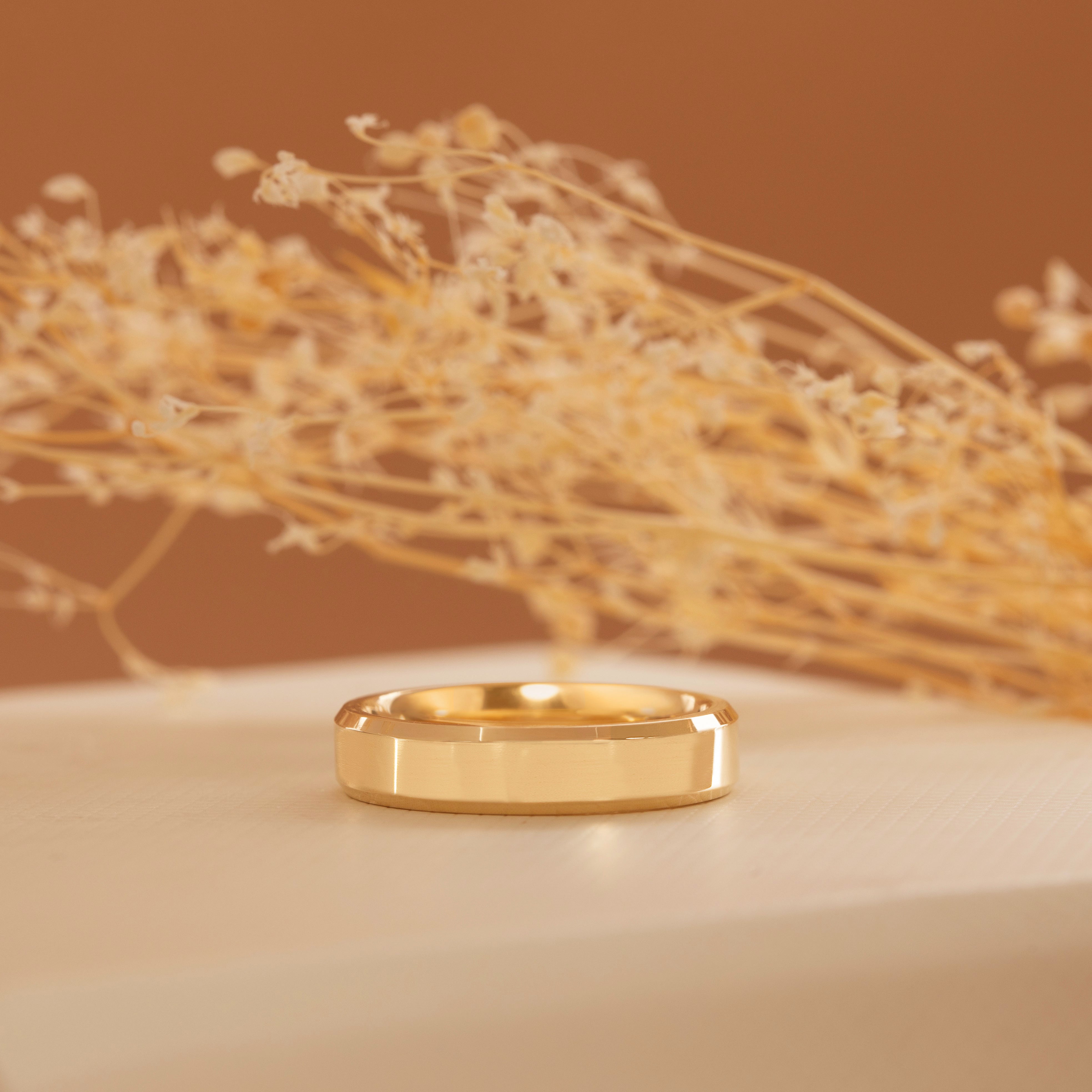 This handcrafted wedding band made of 925 sterling silver has a modern, understated style with a dash of uniqueness. The smooth, beveled edges of the highly polished 4mm band catch the light beautifully. This ring, which is made of fine sterling silver, is ideal for people who value a classic and sophisticated style. Its straightforward style makes it perfect for wearing alone or stacking with other bands.