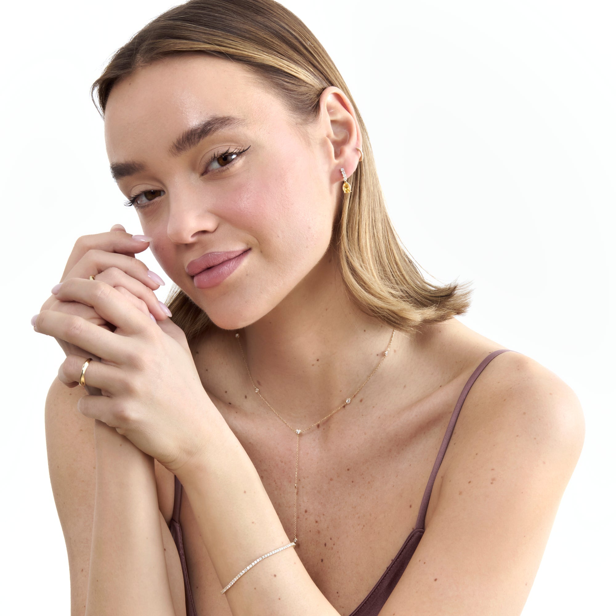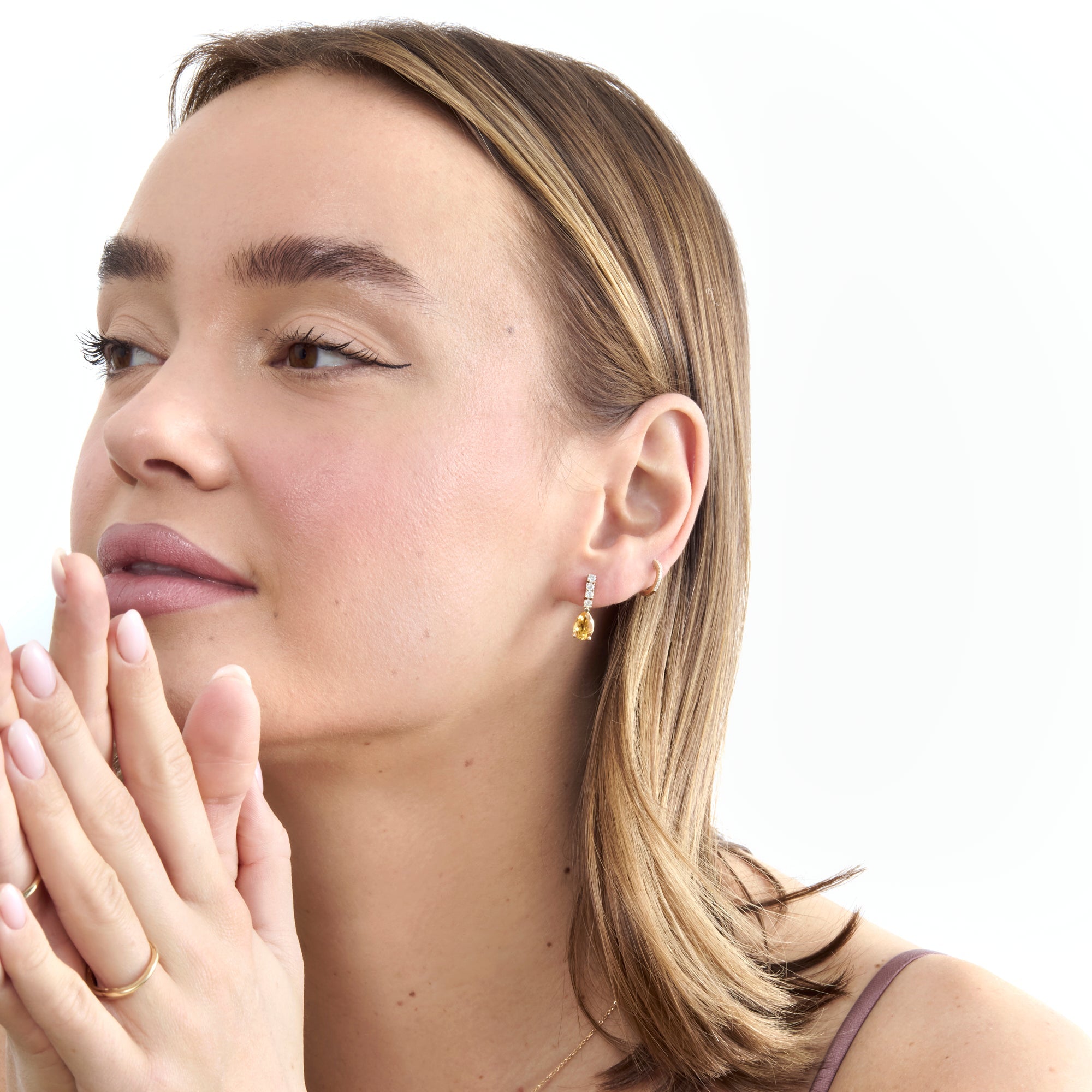 The Vintage Sunfire Drops Earrings will add some brightness to your ensemble. The pear-cut citrine gemstone in these gorgeous earrings has warm, golden hues that resemble a glowing sunset. A waterfall of stunning moissanite stones above the citrine adds a little glitz and refinement. These exquisitely crafted sterling silver earrings combine classic shine with vivid color, making them appropriate for both special occasions and daily wear.