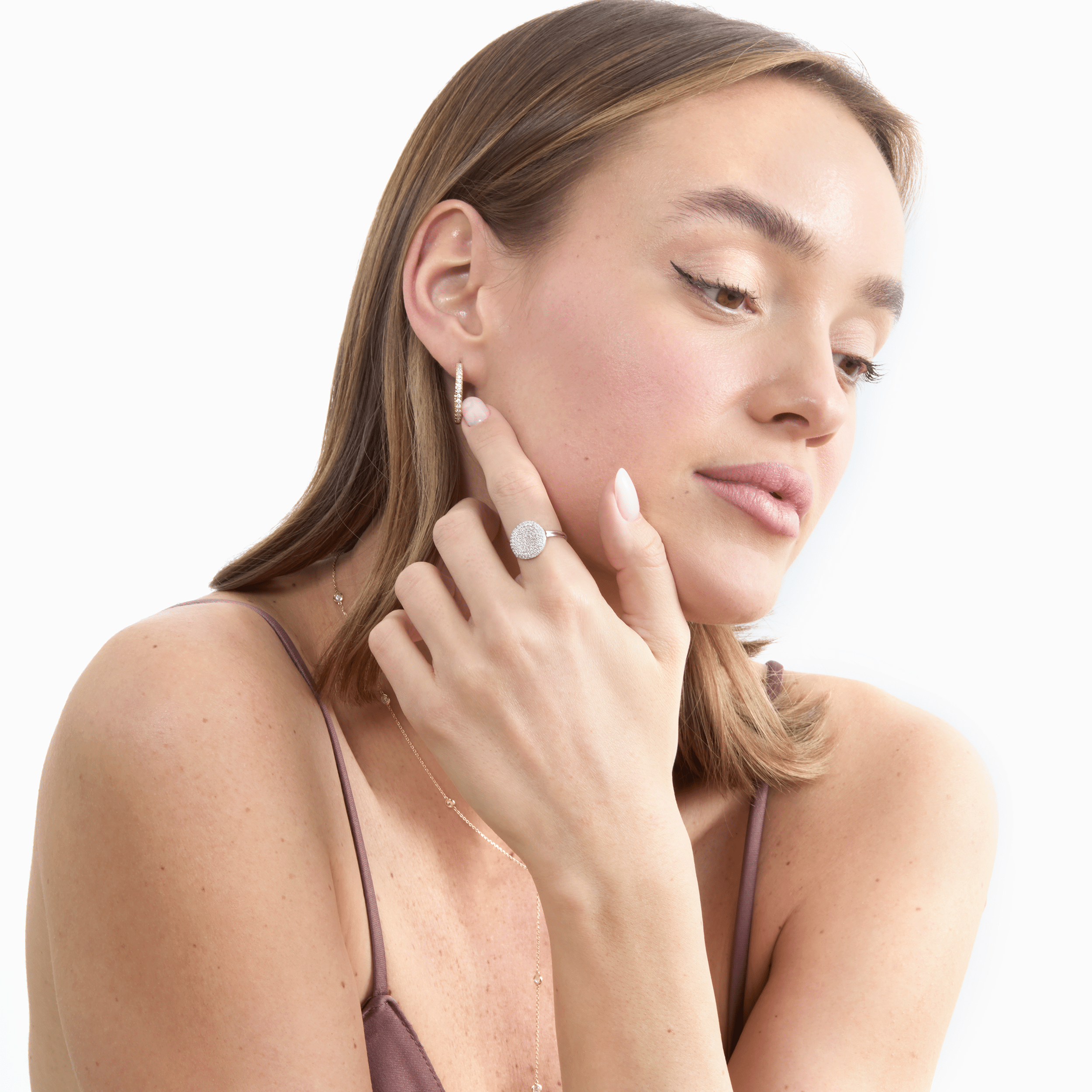 This gorgeous silver moissanite ring is a classic and exquisite piece of jewelry. The ring has a smooth, polished finish and is made of premium sterling silver. Showcasing glistening moissanite stones that catch the light from all directions, the pave design is both sophisticated and contemporary. This adaptable ring is ideal for both special occasions and daily wear, adding a touch of sophisticated brilliance to any ensemble.