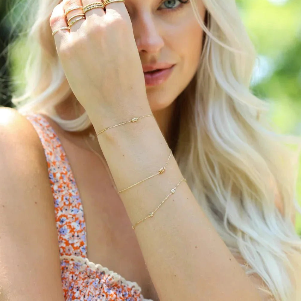 The Handmade Sterling Silver Moissanite By the Yard Bracelet is a timeless piece of elegance. Expert craftspeople use premium solid 925 sterling silver to painstakingly create each bracelet. A sparkling chain that shimmers exquisitely with each movement is created by the expert bezel-setting of delicate moissanite stones. This bracelet is a flexible addition to any jewelry collection and looks great layered or worn alone as a delicate piece.