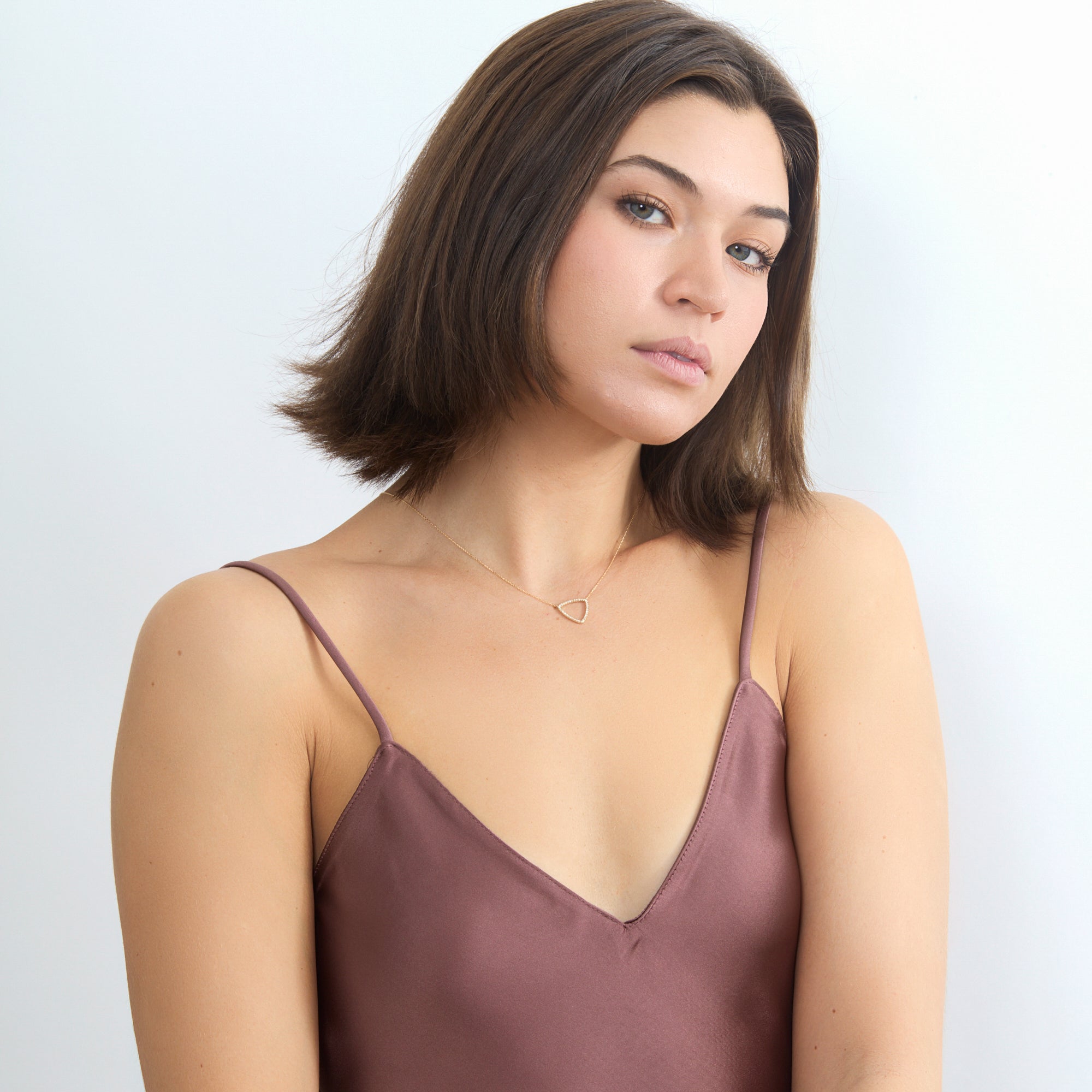 This simple triangle necklace is a gorgeous piece of jewelry that gives any ensemble a dash of contemporary style. Sparkling moissanite diamonds adorn the delicate triangle pendant, giving it a straightforward yet eye-catching appearance. Made from premium sterling silver, this necklace is elegant and long-lasting. It's the ideal present for a loved one or a unique treat for you.
