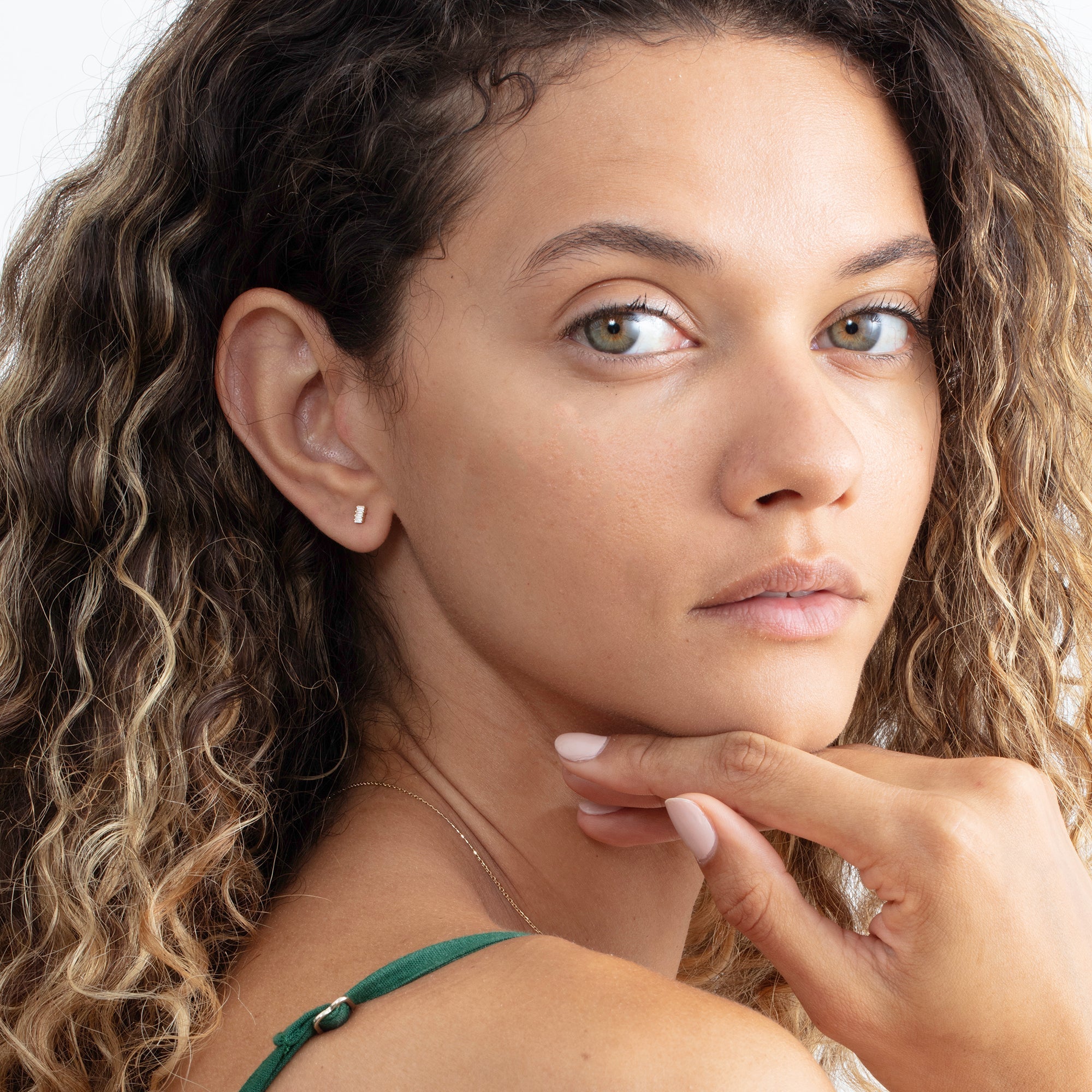 The Baguette Quartet Moissanite Studs Earrings will add a touch of sophisticated elegance. These classic studs are made of sterling silver and feature four dazzling moissanite baguette-cut stones that add a contemporary touch to their brilliant shine. Because of their adaptable style, they can be worn every day, on special occasions, or as a classy, opulent present. These earrings effortlessly blend sophistication and simplicity, making them a timeless addition to any jewelry collection.
