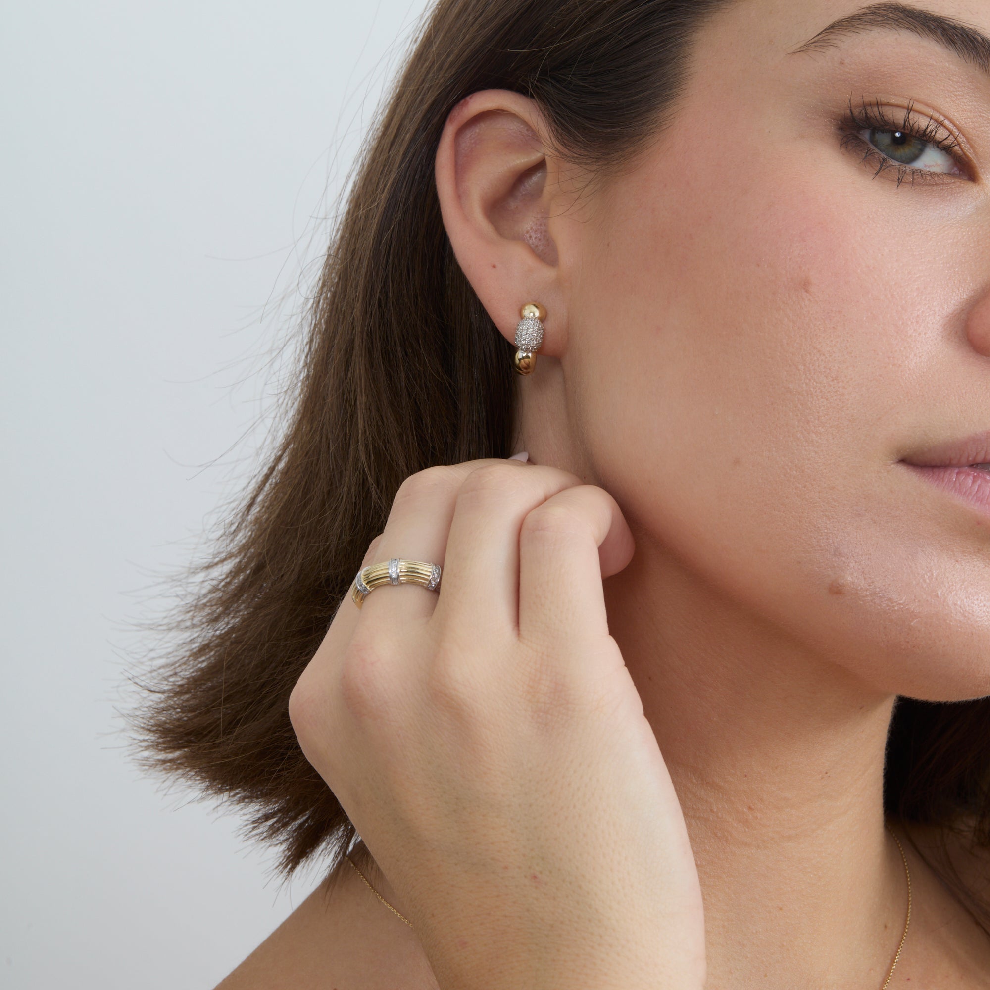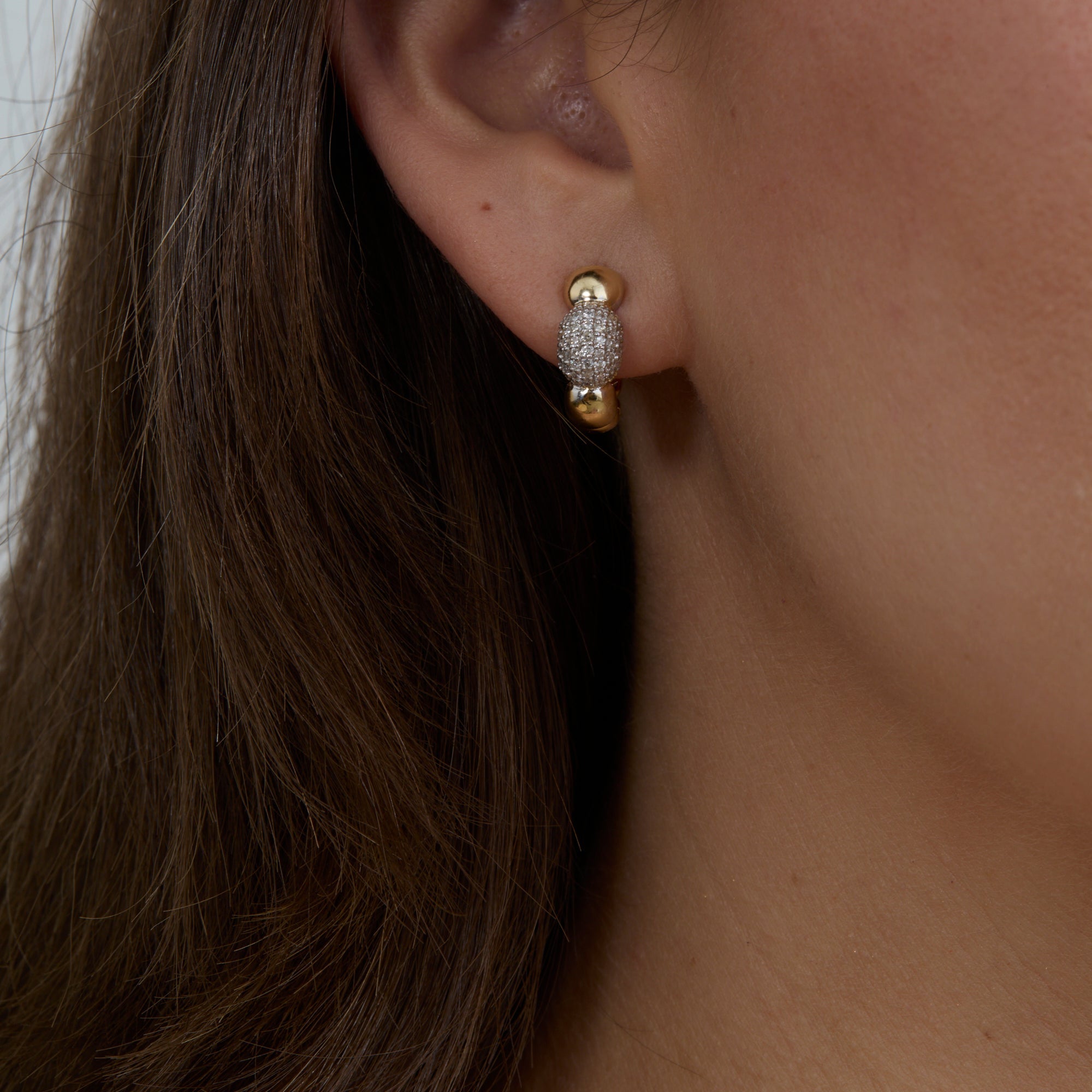 The Silver Moissanite Bubble Hoop Earrings will add a touch of elegance to your daily look. These earrings are made of sterling silver and have a pretty bubble pattern covered in sparkling moissanite stones. They are ideal for everyday wear or as a sparkling accent for special occasions because of their delicate huggie style, which provides a snug and comfortable fit.