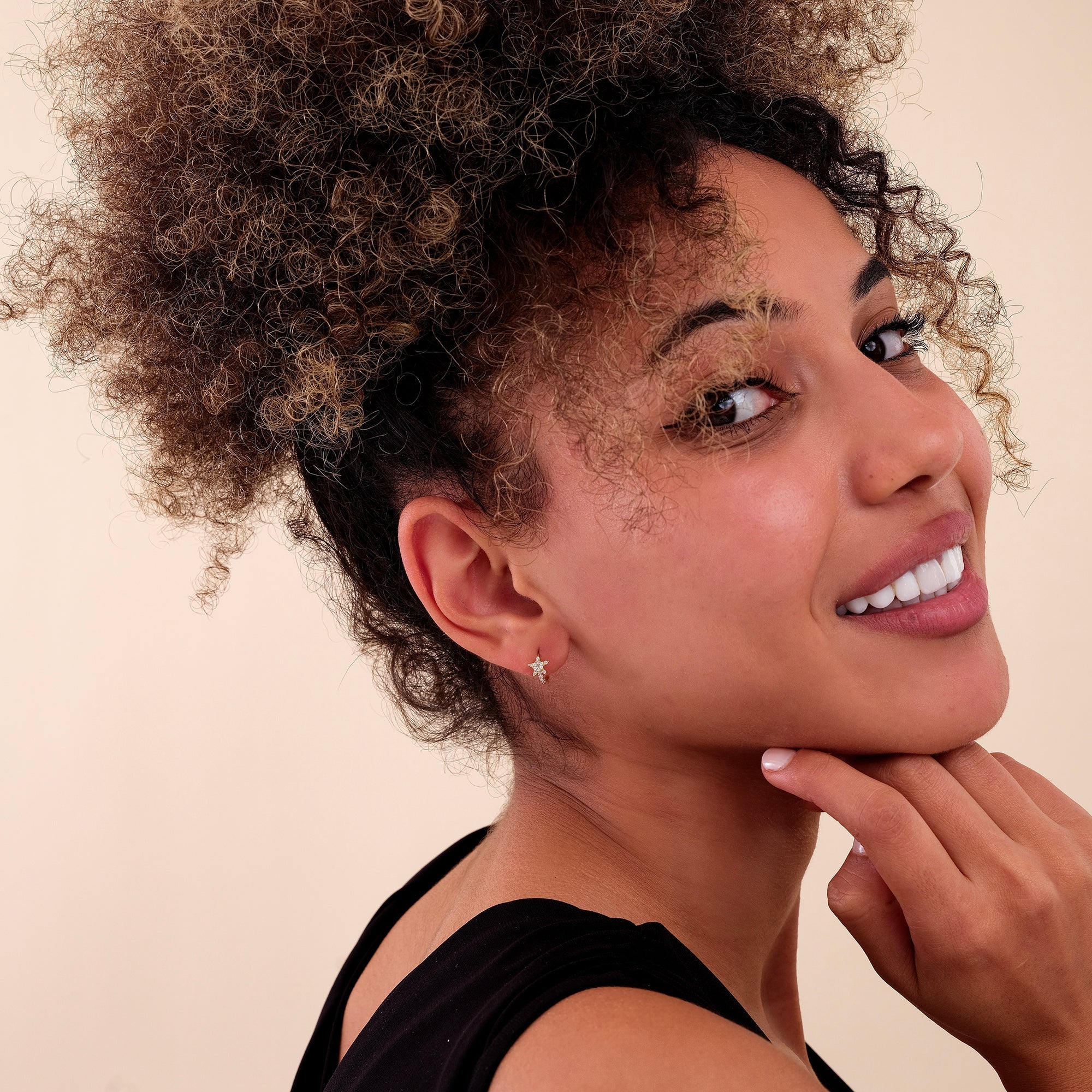 Add a touch of cosmic sparkle to your everyday look with the Celestial Moissanite Star Huggies. Handmade in sterling silver, these star-shaped hoop earrings are adorned with brilliant moissanite stones, capturing the magic of the night sky in a dainty, elegant design. Perfect for stacking, gifting, or wearing alone, these huggies are a timeless way to shine with subtle sophistication.