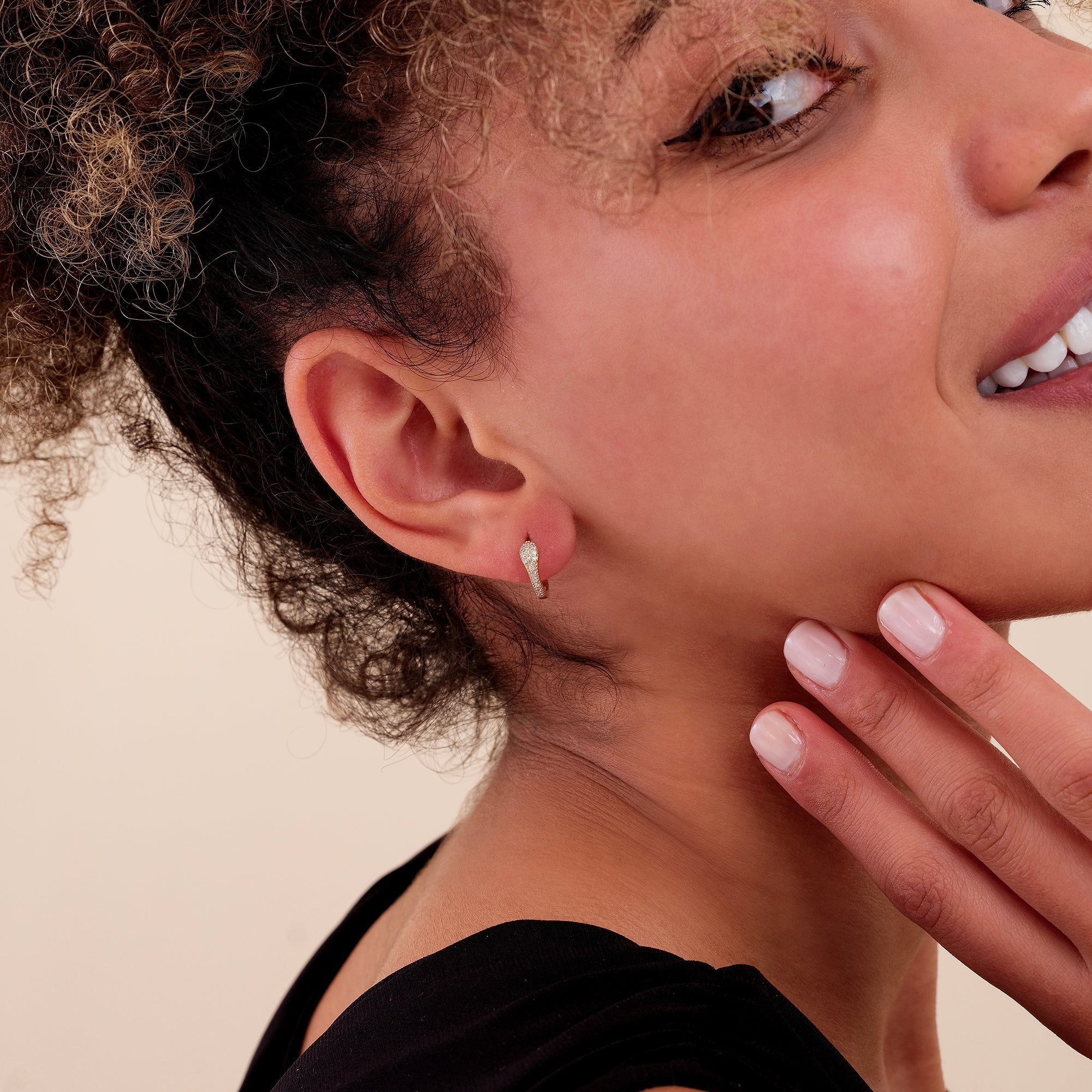 With the Serpent Spark Moissanite Huggies, you can up your daily style ante. These stylish earrings offer a subtle yet eye-catching sparkle thanks to their snake-head design embellished with brilliant moissanite stones. Because they are made of sterling silver, they are comfortable and light enough to wear all day, and the handcrafted details make each pair one-of-a-kind. These multipurpose huggies are ideal for layering or wearing alone, and they make a considerate present for a loved one.