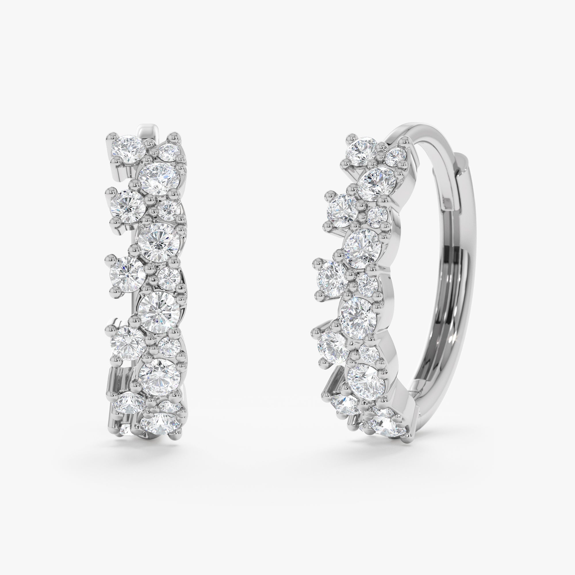 These Cluster Moissanite Huggies, which combine stunning sparkle and sleek design, will elevate your everyday ensemble. The gorgeous alternating pattern of premium moissanite stones in these sterling silver huggie hoops creates a captivating shimmer from every angle. Sturdy yet stylish, they can be worn alone or layered to add a dash of contemporary shine to any ensemble.