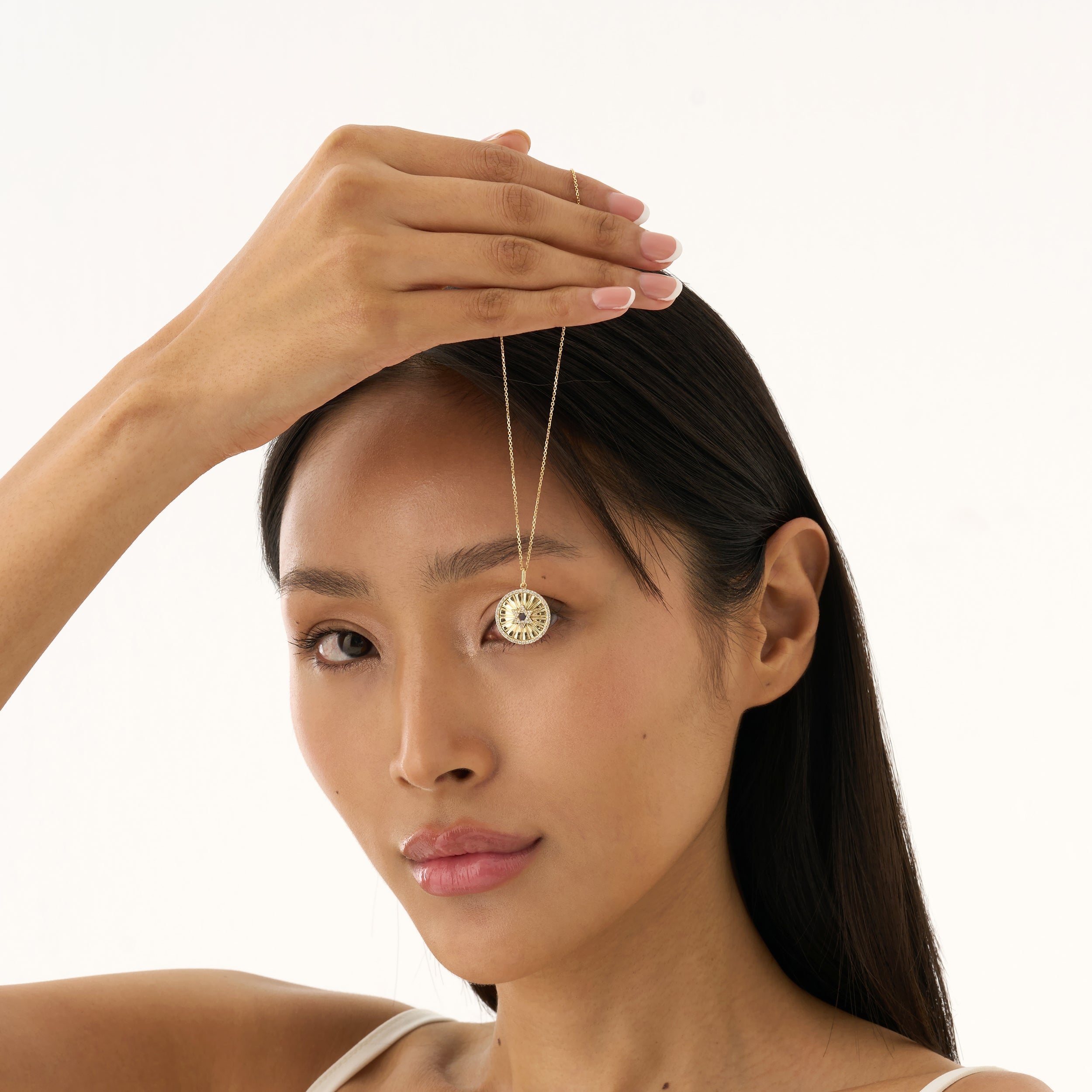 With our brilliant Star of David Moissanite Pendant, you can brighten your faith. This gorgeous disc-shaped pendant, which is crafted from lustrous solid sterling silver, has a Star of David at its center encircled by alluring radiating lines that create a striking sunburst effect. Brilliant moissanite diamonds are painstakingly set into the Star of David itself and a stunning outer halo, producing a stunning sparkle and unmistakable presence.