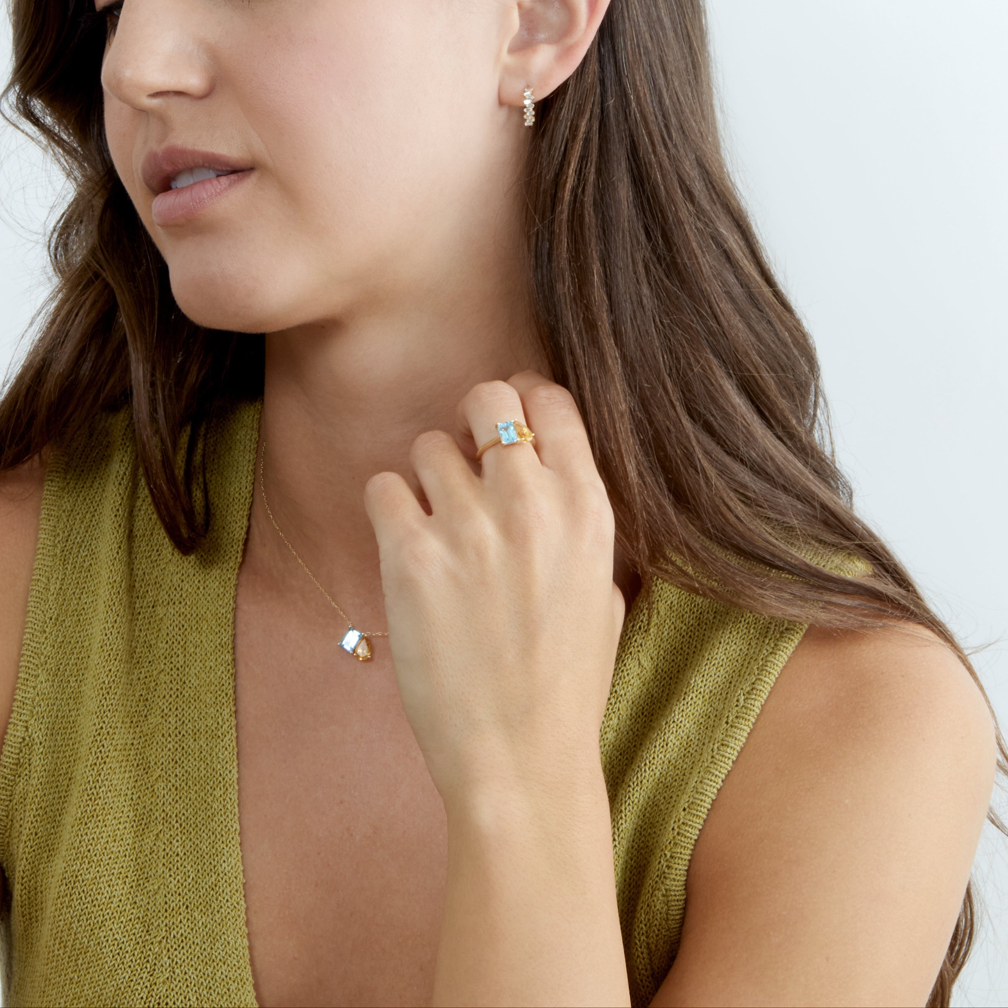 This gorgeous Toi Et Moi ring is a one-of-a-kind and breathtaking representation of love and friendship. It has two striking gemstones: a pear-cut golden citrine and a rectangular emerald-cut blue topaz. The "Toi Et Moi" (You and Me) design symbolizes the lovely union of two people, each of whose unique personalities shines brightly and perfectly complements the other.