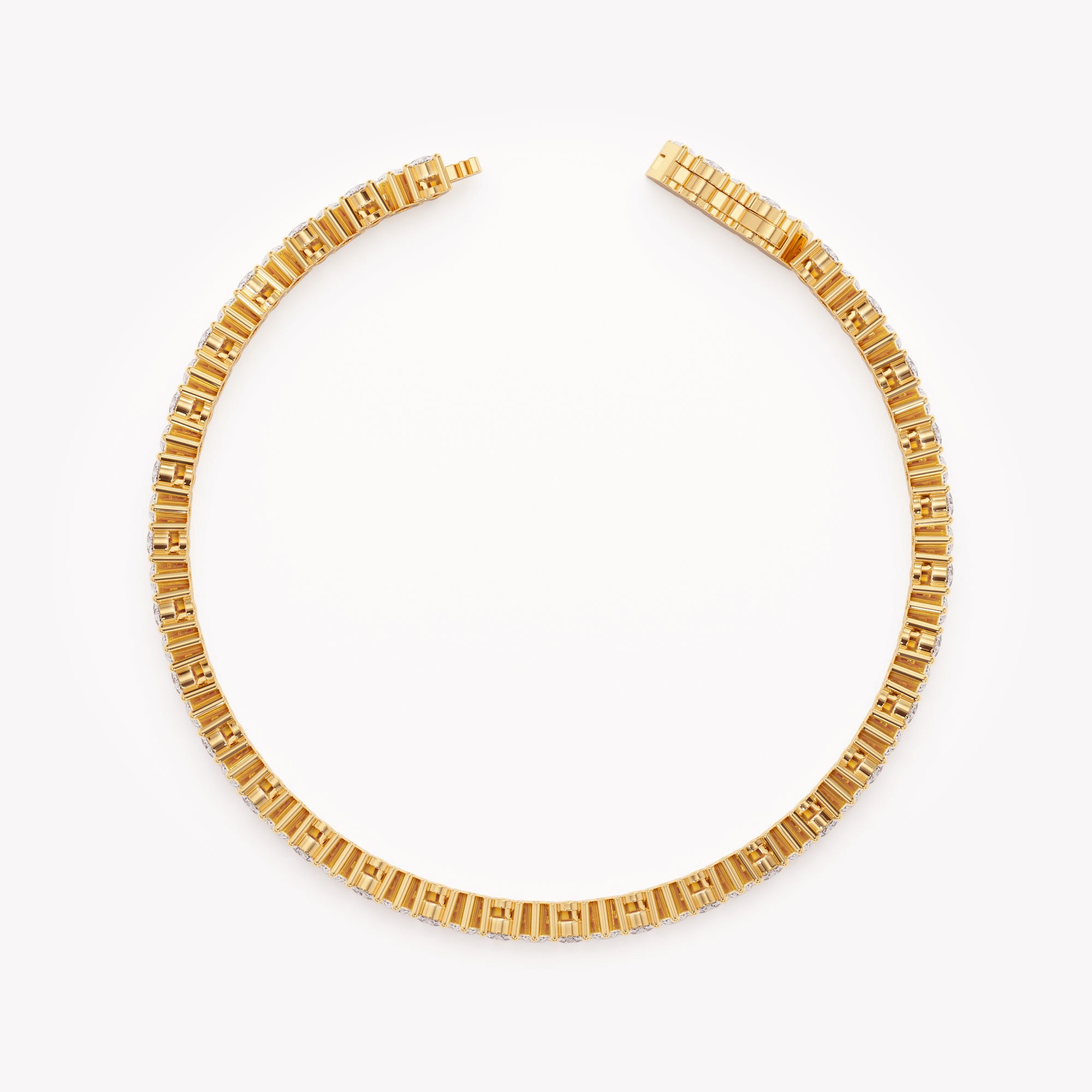 This product offers the opulent look of a diamond tennis bracelet—brought to sustainability through moissanite stones—and is intended for lovers of elegant beauty with a social conscience. It combines the best aspects of both modern and classic styles, making it appropriate for both formal and casual settings.